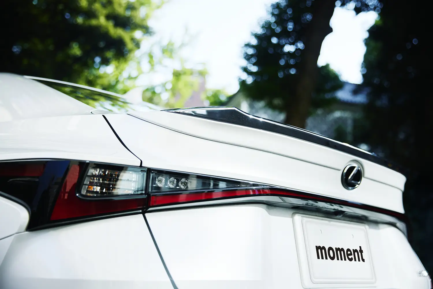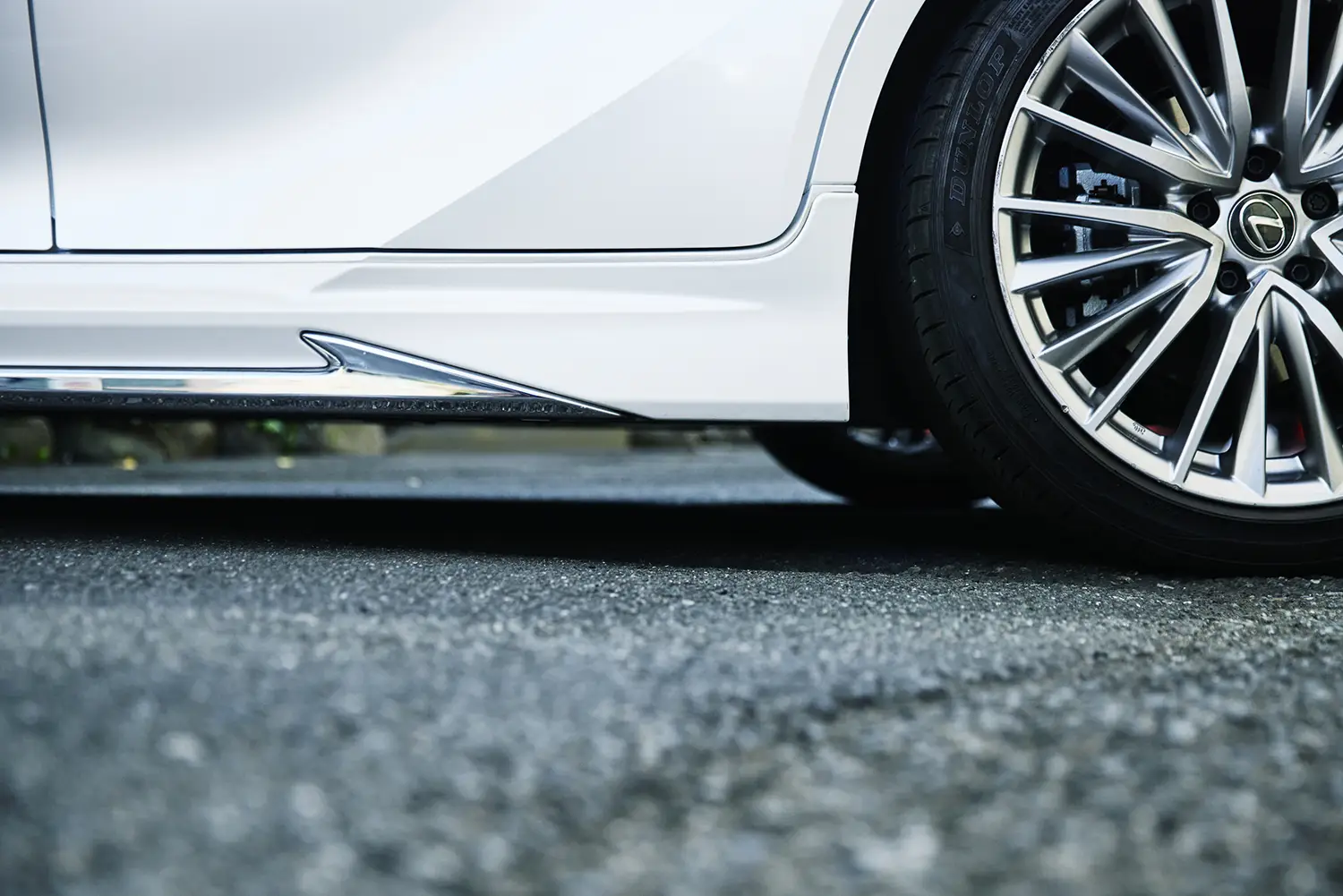 「クルマの下部に厚みがあるデザインが好きで、2台続けてエアロパーツ付きのISに乗っています。MODELLISTAのパーツは、洗練された大人の雰囲気がありますね。フロントウイングスポイラーとサイドスカート、19インチのアルミホイールのトータルコーディネートが気に入っています。リヤのトランクスポイラーはなくてもよかったんですが、後ろ下がりのフォルムにメッキのアクセントがある“羽根”が加わるとおしゃれだなと思って付けました」