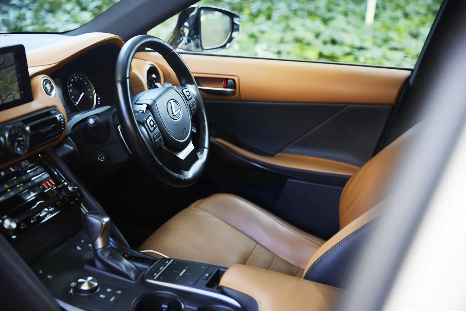 田村先生のクルマ選びは以前から、動力性能よりデザイン重視。ISを2台続けてレザー内装にするなど、インテリアのデザイン、居心地のよさにも気を配っている。今乗るISでは、落ち着いた雰囲気のタンカラーの内装を選んだ。