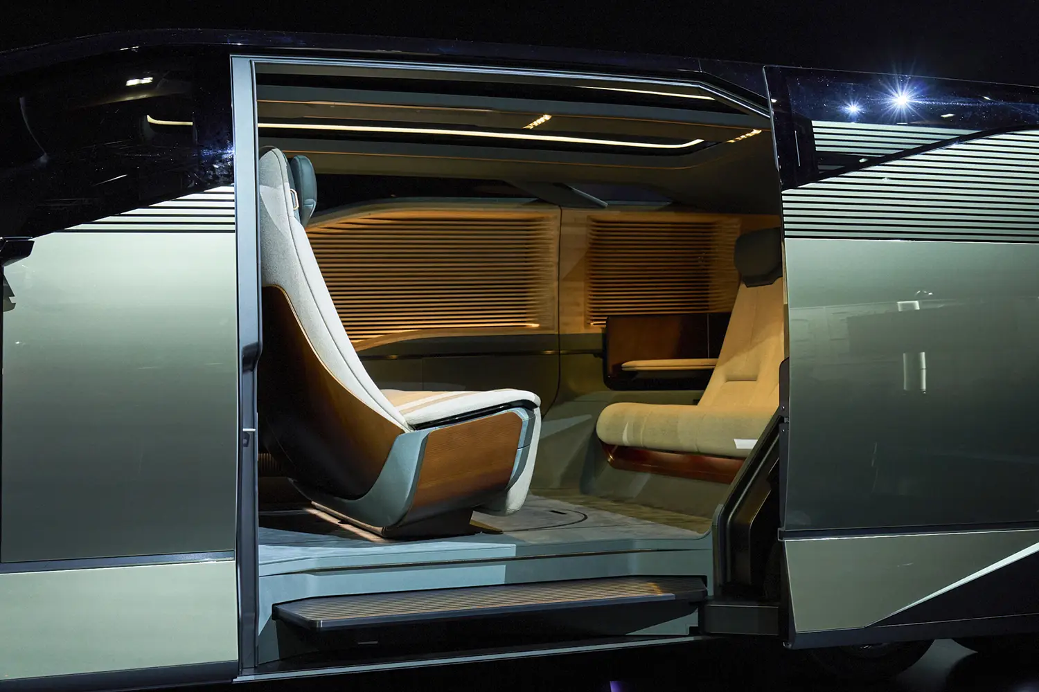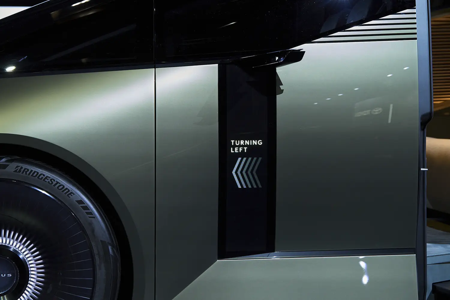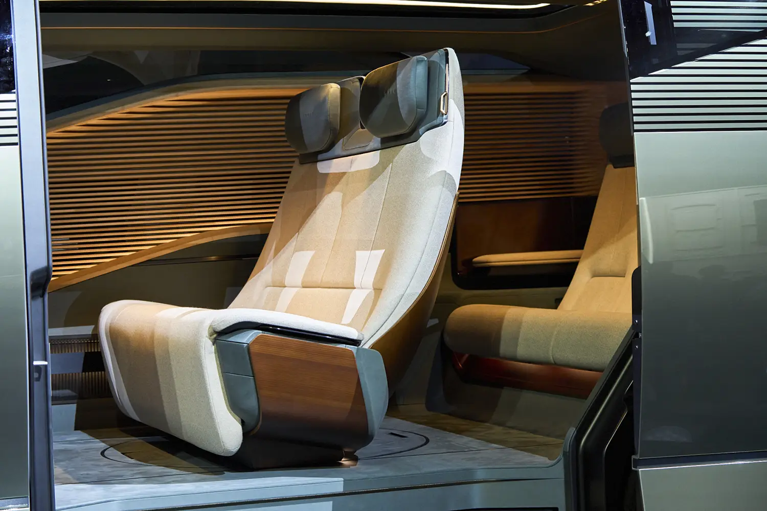 会場でひときわ大きな存在感を放っていたのが「LS CONCEPT」。LEXUSの嚆矢そして旗艦として1989年に誕生したLSは、36年を経て6つの車輪と広大な室内スペースをもつミニバン・ボディに再定義された。