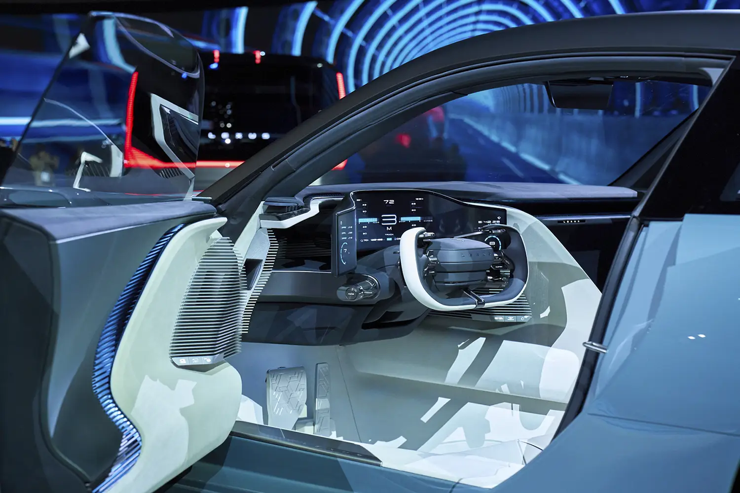 内装はJMS 2025で世界初公開。ドライバーが運転に没入し、エモーショナルな体験ができる空間、そしてデザインとなっている。
