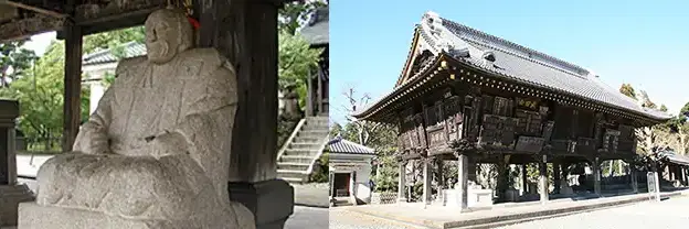また、歌舞伎の花形、市川團十郎が江戸時代から代々参拝してきたのもこの寺。初代と二代目はともに、この寺を題材にした『成田山分身不動』という歌舞伎を演じるほど、深く帰依していた。境内では、七代目が奉納した石像や「三升の額堂」を見ることができるなど、歌舞伎ファンの聖地としての魅力も見逃せない。