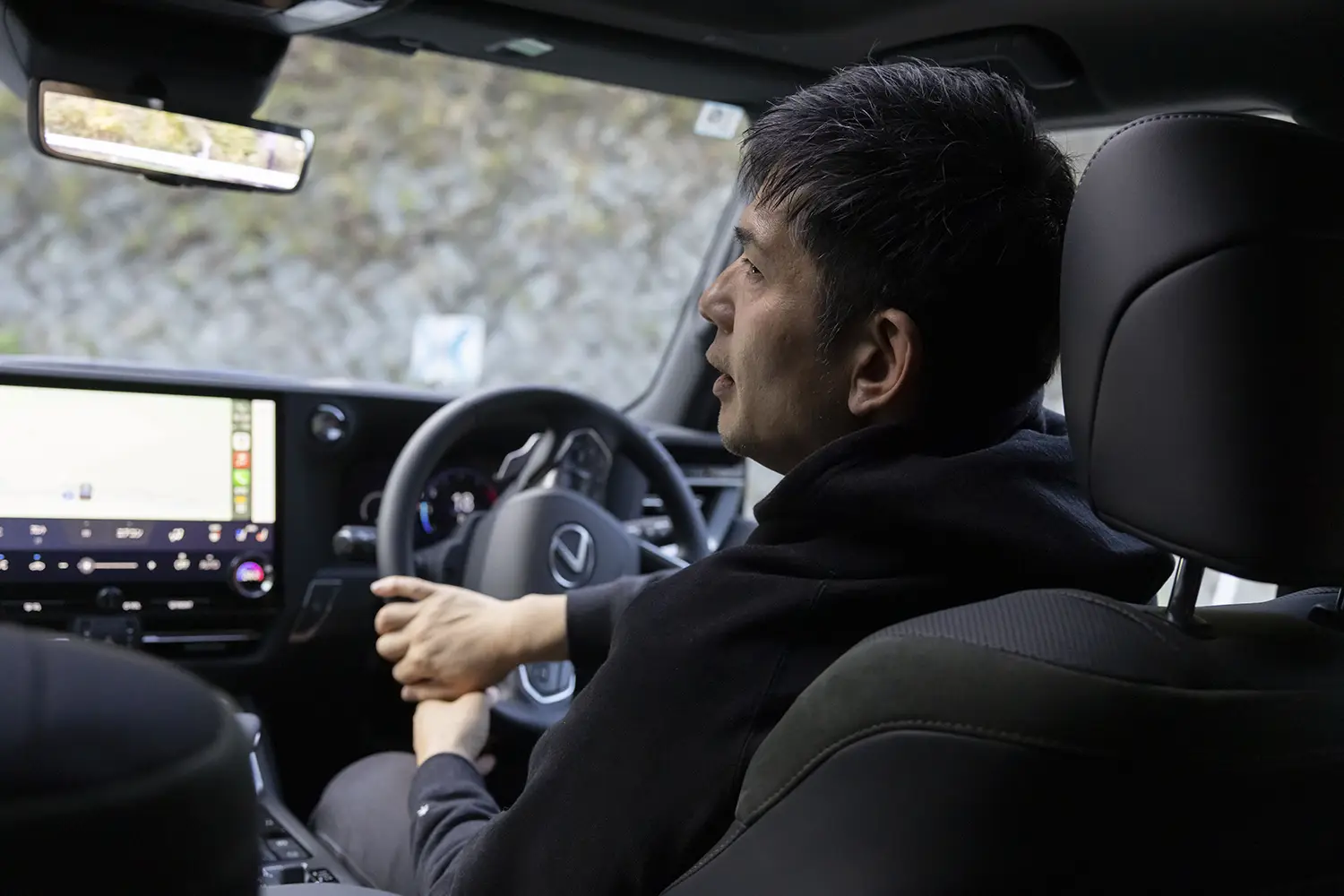 「乗ってください。すぐ近所にお気に入りの場所があるんです」――そういってLEXUSのコックピットに滑り込んだ楠田氏は、一緒に店をでた我々を乗せて、全幅が2メートルもある大きなクルマをひらひらと操り、街の中も九十九折りの山道も、同じようにすいすいと軽快に走らせる。つまるところ“運動神経のいい運転”である。