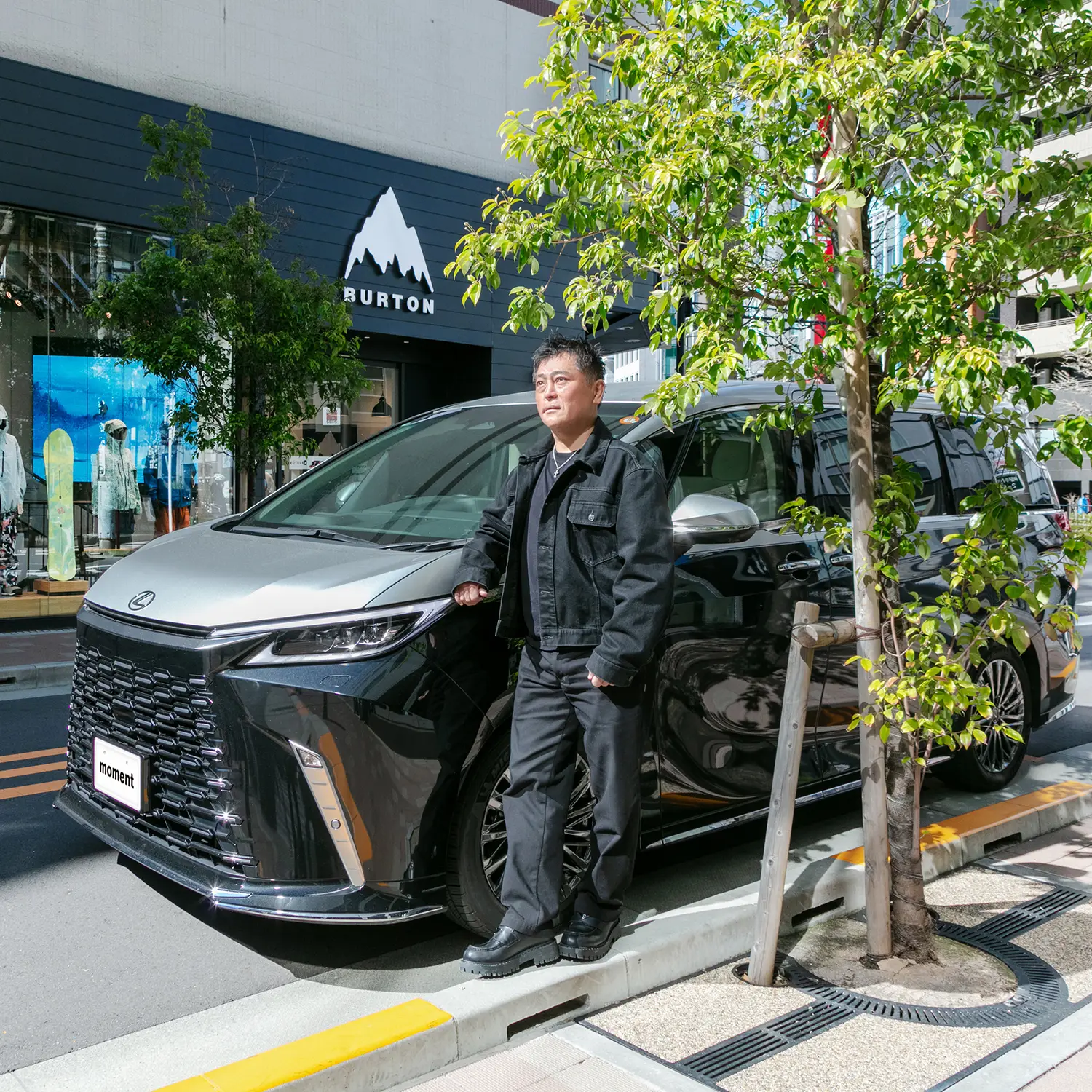 東京・神田。スポーツ用品店が軒を連ねる街の一角にある「Burton Store Tokyo Kanda」の前に、際立つ存在感を放つクルマが停まっていた。LEXUS LM500h EXECUTIVE――堂々たる風格と端正なたたずまいのせいか、多くの歩行者が通りすがりに振り返る。