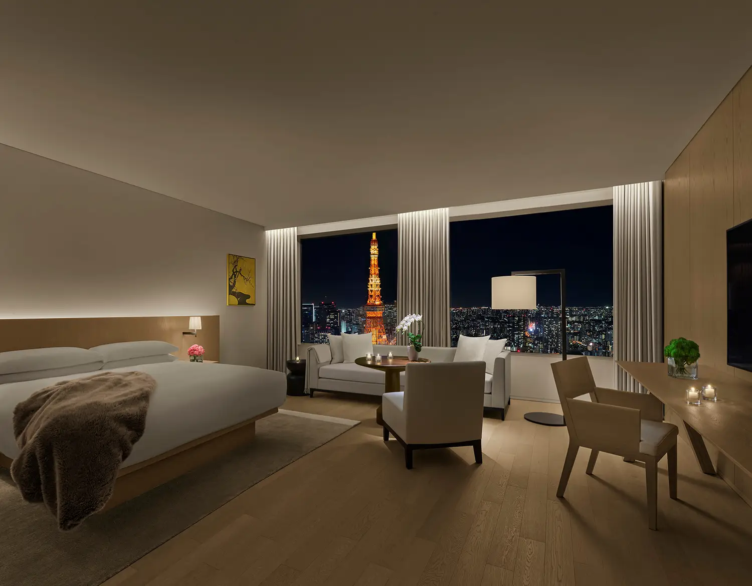 31階以上に位置する全206室(うち22のスイート)はすべて東京スカイラインを望む設計で、15のテラス付きの客室もあり、窓越しだけでなく屋外からも夜景を堪能できる。夜風に吹かれながら東京らしい夜景に包まれる瞬間は、記念日の夜にふさわしい特別な時間となるはずだ。