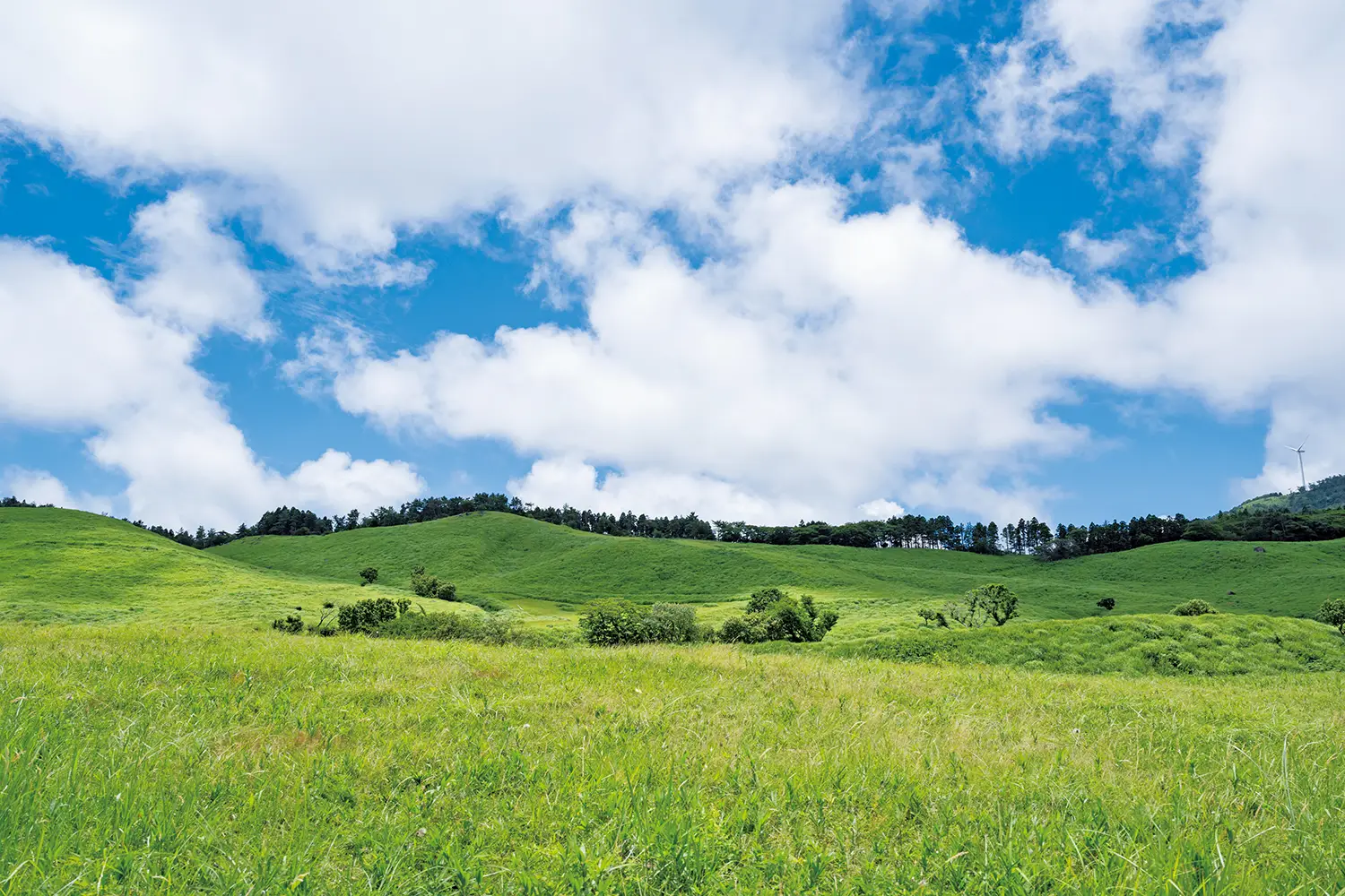 稲取細野高原は、約80万年〜20万年前に噴火を繰り返していた天城山の一部。秋が深まるにつれて、白銀から黄金へと色が移り変わるススキの花穂で情緒が増す(見頃は10月下旬から11月上旬)。隣接する三筋山からは、天城連山と相模湾に浮かぶ伊豆諸島の大パノラマが眺められる。