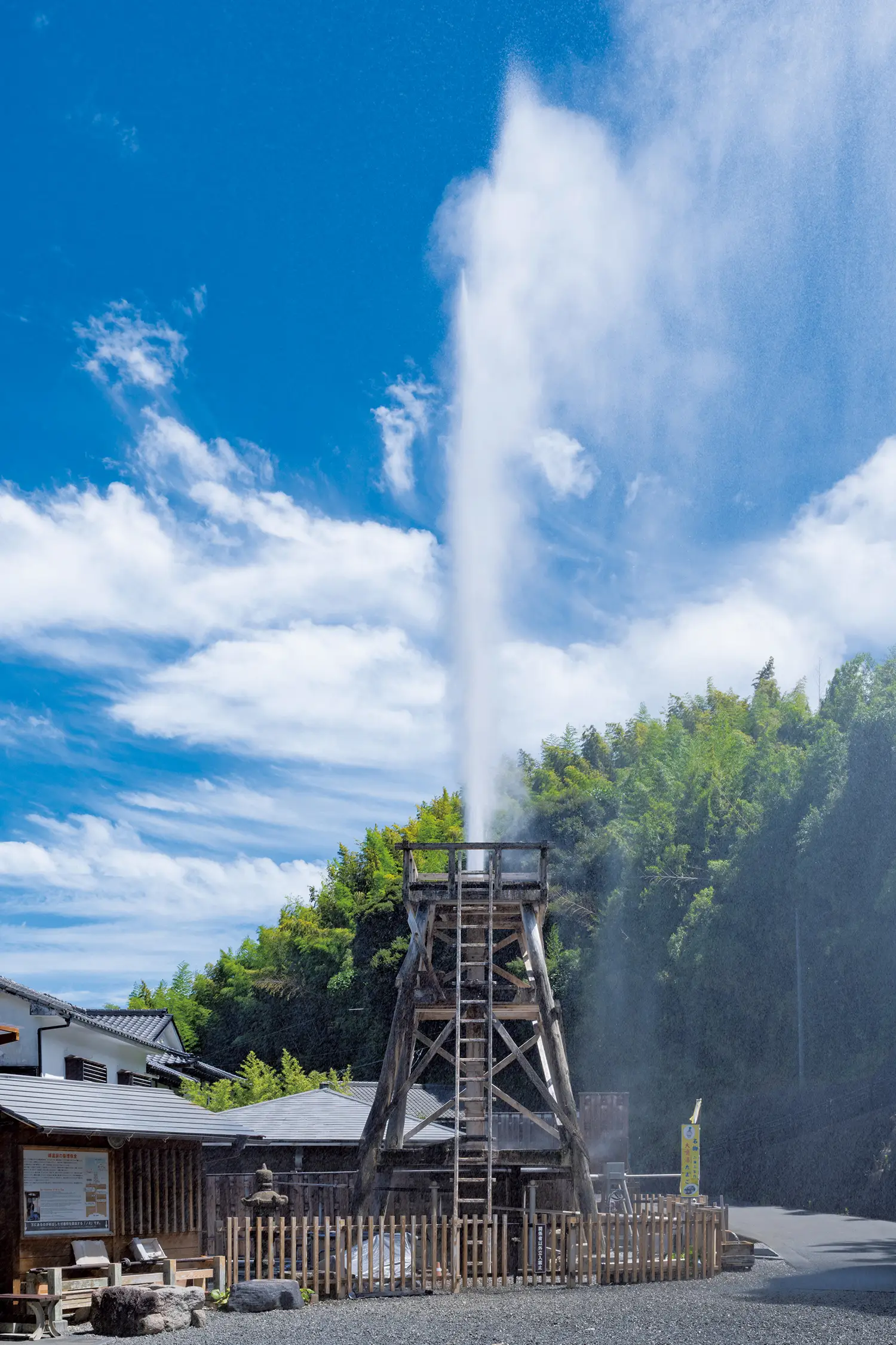 日本では珍しい自噴泉を見学できる。9時30分から15時30分まで、1時間おきに合計7回、1分間ほど噴湯口が開かれる。100度の温泉が毎分600リットル、高さ約30メートルまで噴き上がる様子は圧巻。踊り子温泉会館など、峰温泉が供給されている近場の施設で入浴して帰るのも一興である。