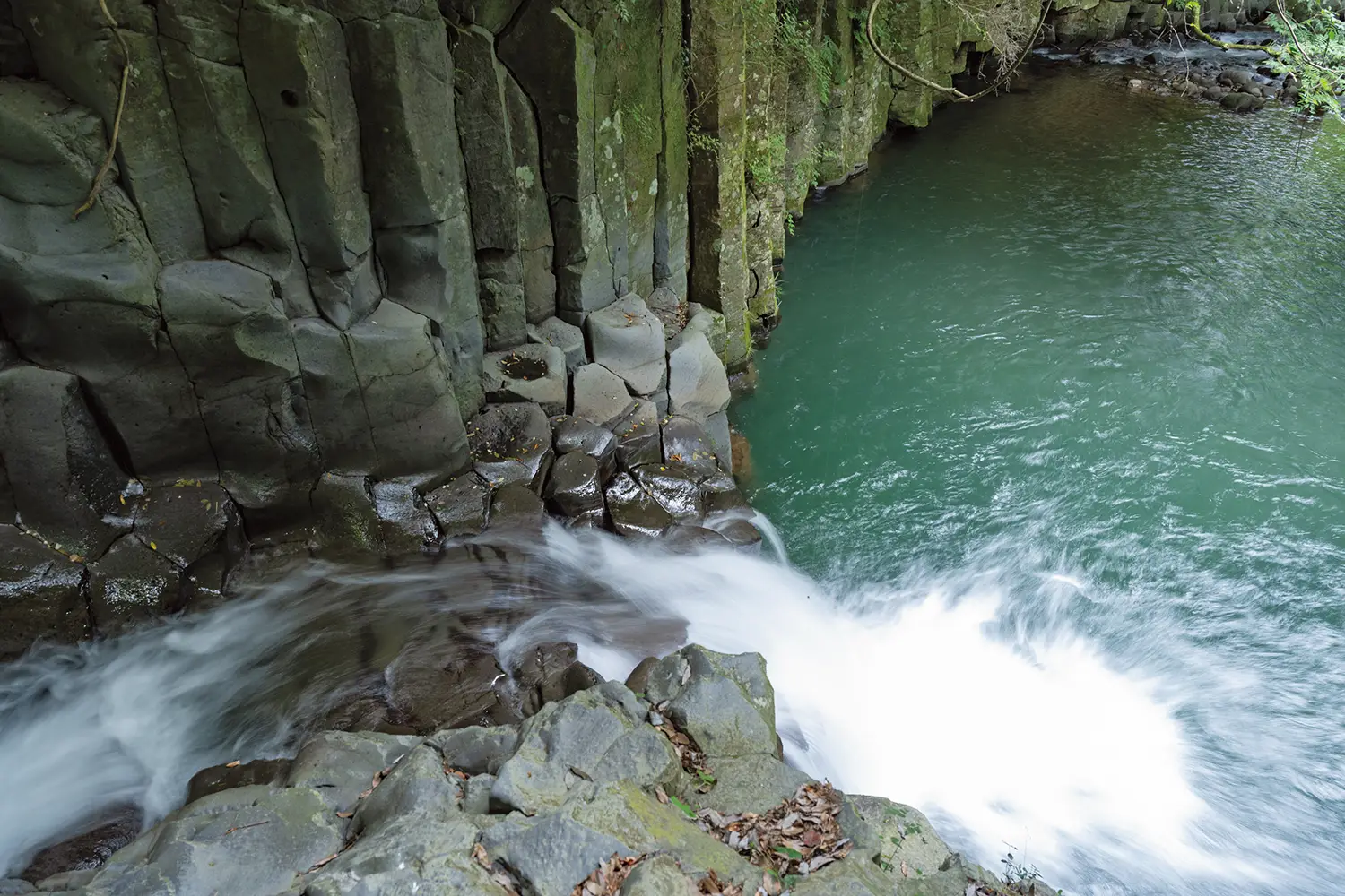 伊豆東部火山群のひとつである鉢ノ山が約3万6,000年前に噴火した際、流れ出した溶岩の一部が現在の佐ヶ野川に沿って流れ下りた。その溶岩が冷えて固まるときにできた柱状節理などの火山的景色に佐ヶ野川の渓谷の景観が相まって、ダイナミックにして癒しの感覚に満ちた場所に。