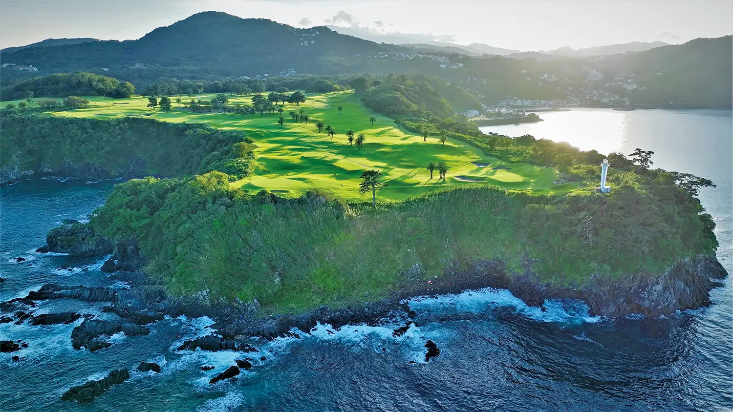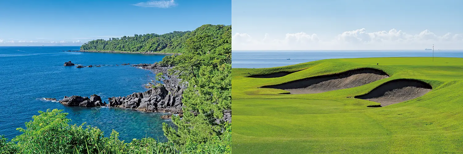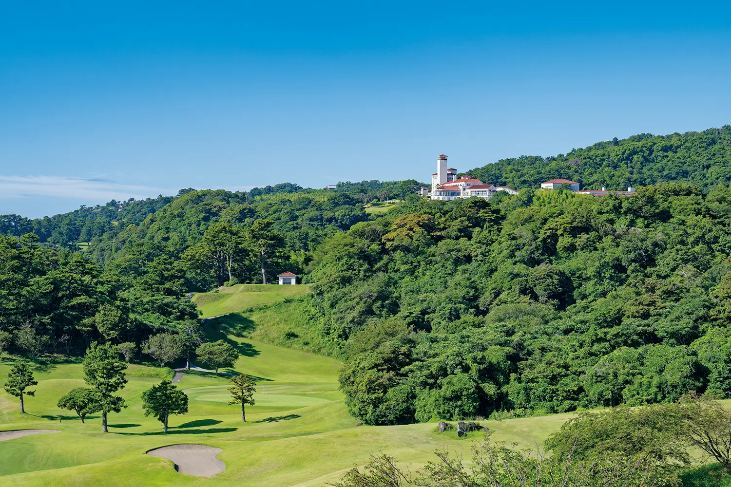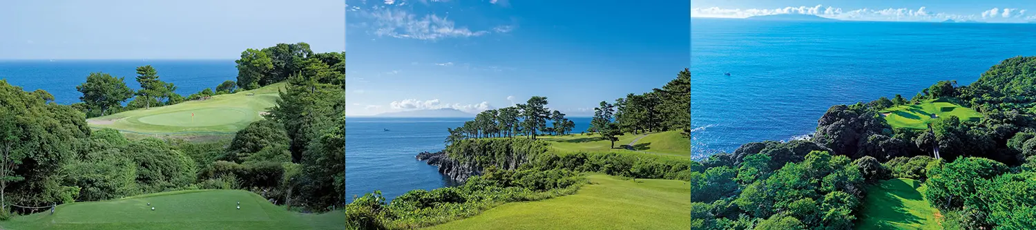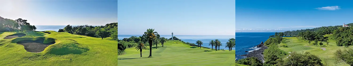 水平線の向こうに大島を望む絶景リンクス。大谷光明が設計した「大島コース」は、ホテルが開業する以前の1928年に完成。川奈ホテルの原点となっている。