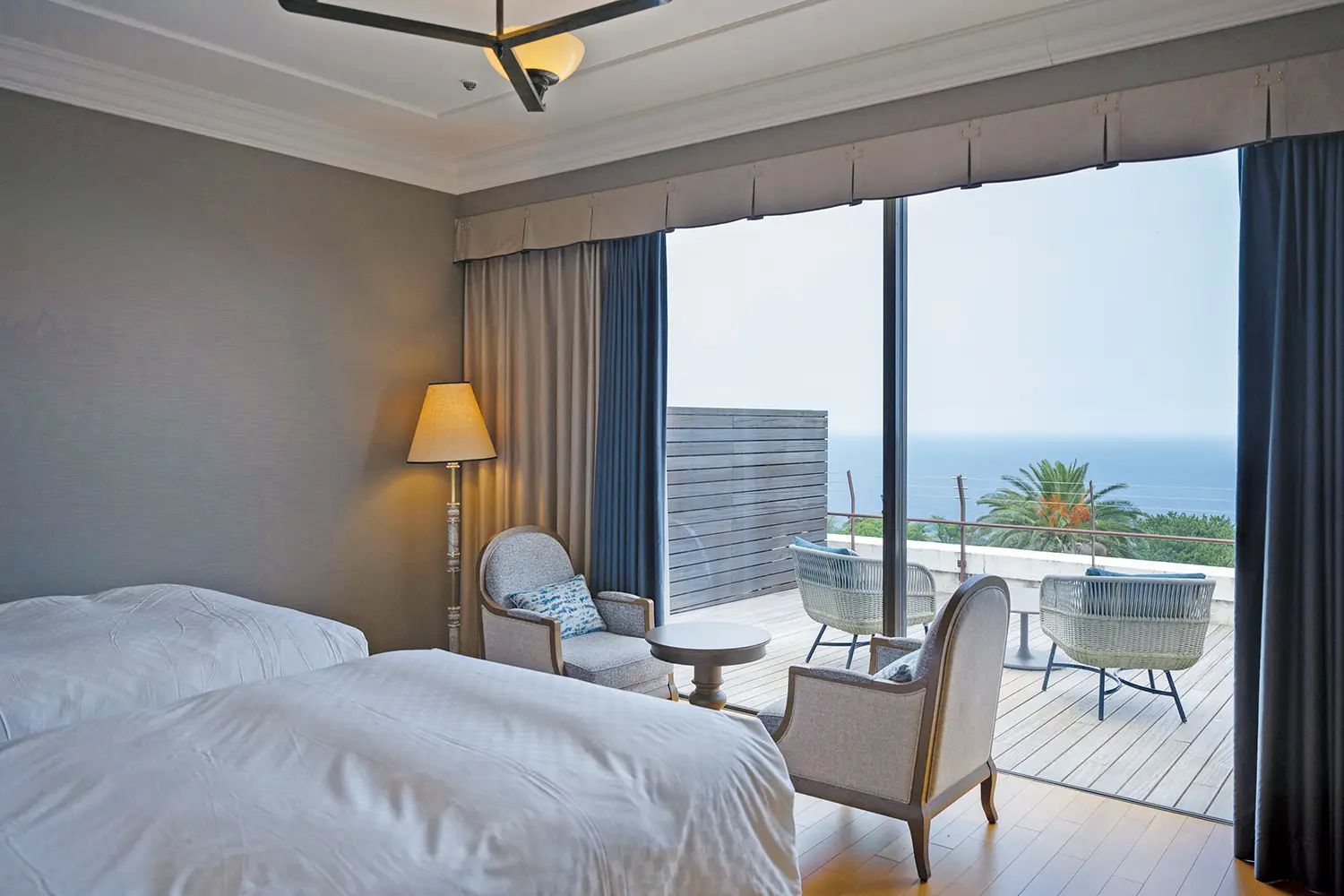 朝、海に面した部屋の窓を開けてみる。目に飛び込んでくるのは、空と海による青のグラデーションと名門ゴルフコースの万緑だ。逗留する者は、この青と緑の美しさに微笑みかけることだろう。そこに身を置く時間に体験するのは、バロンの夢を肌身に感じ、その夢の具現化に成功した彼と握手を交わすこと――。