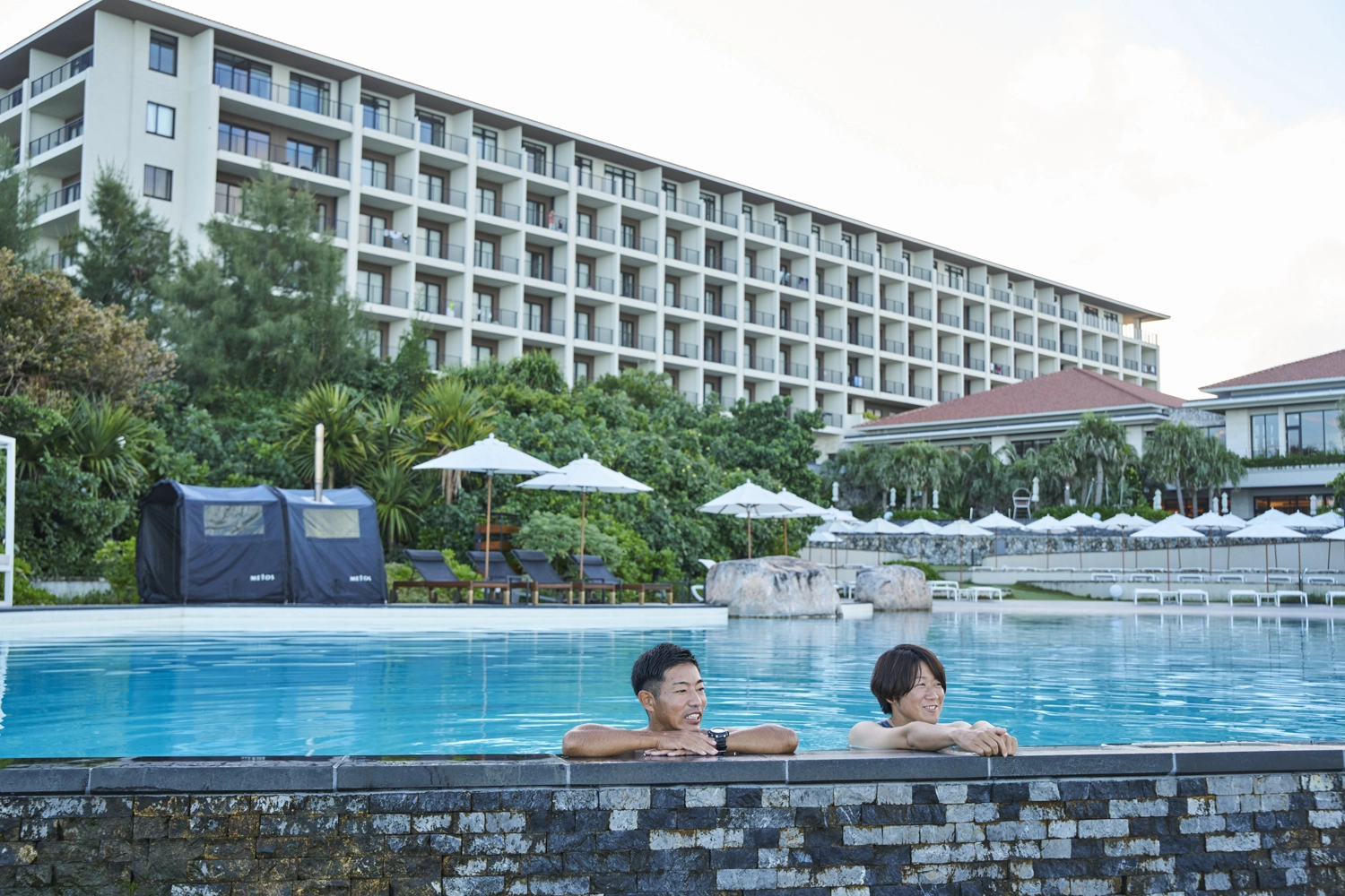 冬ならではのお楽しみのひとつが、2025年12月1日(月)から2026年3月15日(日)までオープンする「エターナルウィンタープール」。東シナ海の白砂のビーチに面した「オーシャンテラスプール」が温水仕様にアップグレードされて、眼前に広がる絶景と温水プールならではの心地よい浮遊感を堪能することができる。