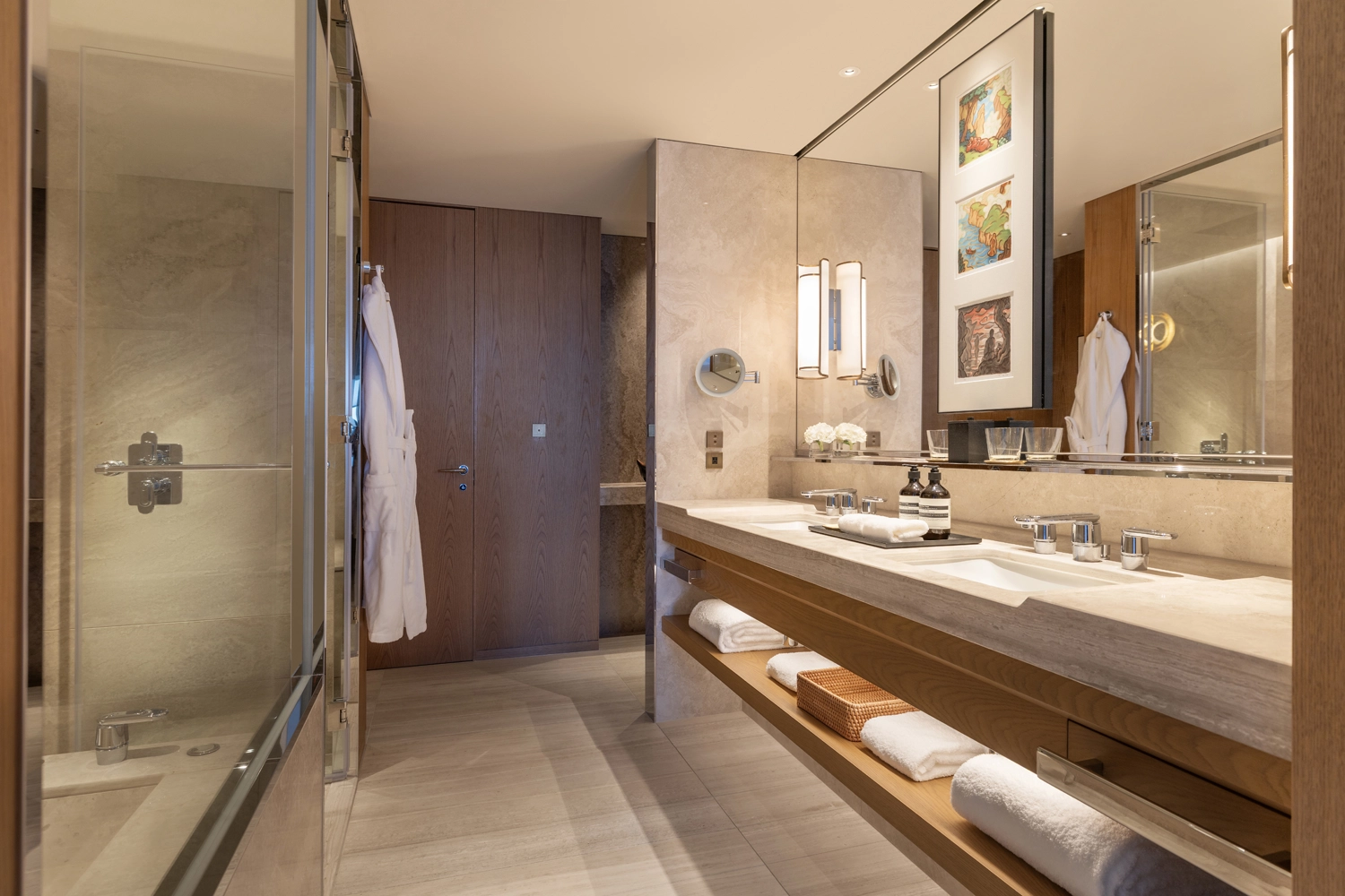 115〜290平方メートルのスペシャリティスイートには、大理石やヒノキのバスタブ、スチームサウナ、キッチン、エンターテインメントルームなどが備えられ、よりプライベート性の高い滞在が実現。アイコン的な存在である「トーキョー スイート」(220平方メートル)には、従来のデザインが引き継がれる。