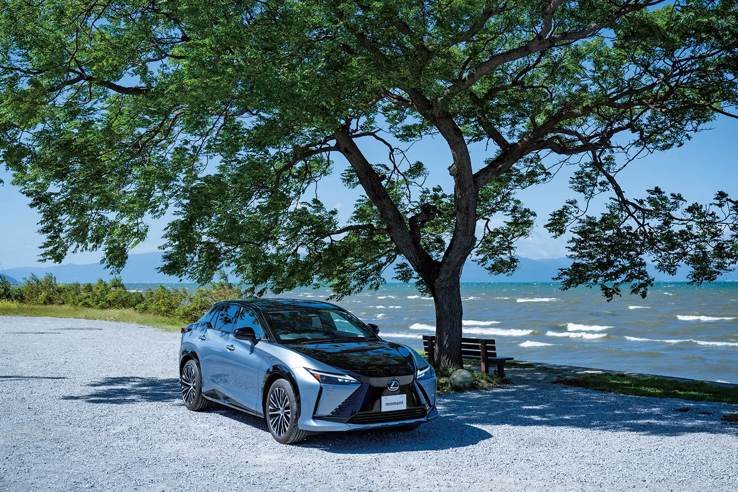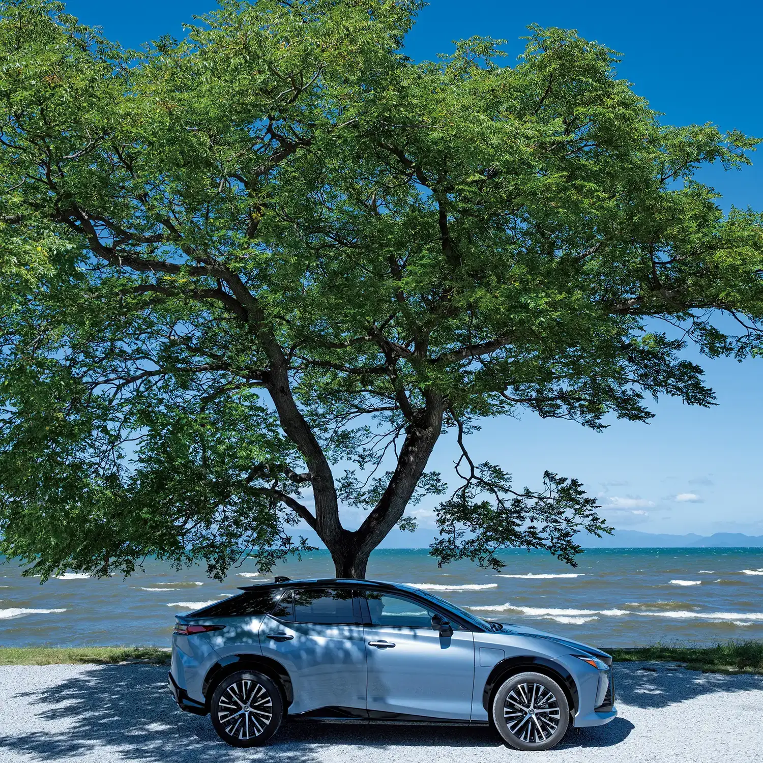 橋の西側の出発地となる大津市堅田は古来、湖上交通の要地であり、中世においては近江の湖賊(水軍)という一大勢力の本拠地だった。豊臣秀吉は朝鮮出兵の際、この琵琶湖水軍を船舶兵として徴用している。日本最大の湖上、そして湖畔を往くLEXUS RZ450eは、自然の雄大さと歴史の浪漫をその身に浴びながら、静かに、清く、逞しく駈けていく。BEVゆえの、まさにクリーンな走りだ。