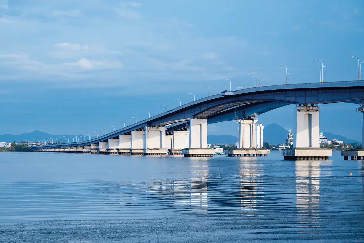 この国を旅してみれば、まさにあわあわとした、つまり淡水に満ち満ちたきらびやかな国であることが体感できる。例えば、琵琶湖の東岸と西岸を結び、滋賀県の大動脈となって産業や観光の発展に寄与してきた琵琶湖大橋。琵琶湖でもっとも横幅が狭い場所を渡っているとはいえ、実際に湖上を駆けてみれば、その豊富な水量を体感せずにはいられない。