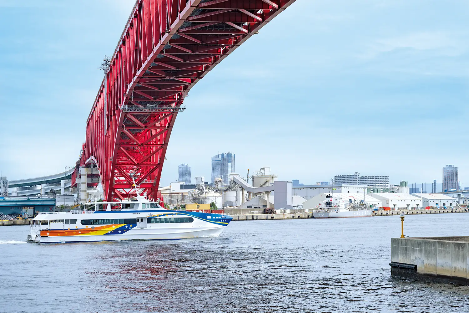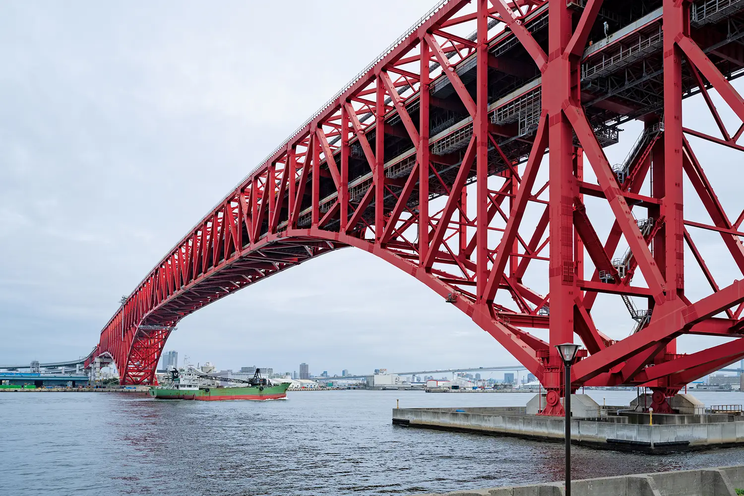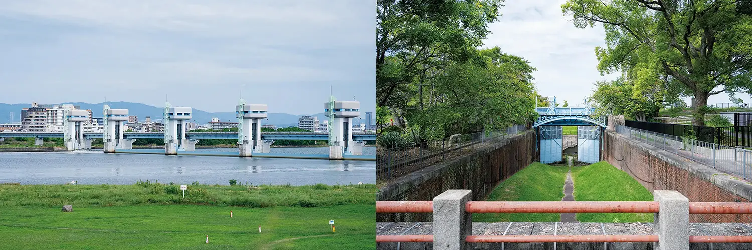 農業用水・工業用水・都市用水の取水を目的に、1964年に造成された淀川大堰まで来れば、大阪湾までは残り約50キロメートル。淀川の水位を制御するために明治期につくられた旧毛馬閘門まで来れば、残り約15キロメートル。舟運が隆盛を極めた江戸時代、大阪側の終着点として栄えたのが八軒家浜だ。京阪電車「天満橋駅」前のリバーサイドエリアとして整備され、観光船の発着場となり、変わらぬにぎわいを見せている。そして、水の旅がフィナーレを迎えるのは、大阪湾沿岸に位置する港大橋。旅の総括として、あべのハルカスの展望台に昇り、地上約300メートルから水都大阪を望むのもいいだろう。