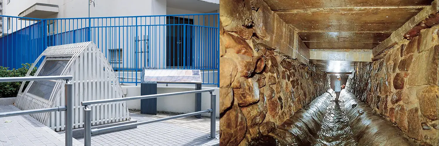 「現代から見ても遜色のない」というのは単なる比喩ではない。現代の大阪市中央区において、実際に「太閤下水」の一部が現役で使用されている。花崗岩や安山岩を緻密に積み上げた石組みの頑強さ、自然流下で詰まりにくい設計などにより、数百年の使用に耐え得るサステナブルなインフラが、16世紀末に生み出されていたのだ。大阪市内には、地上に設置したガラス窓越しに現役の「太閤下水」を見学できる場所が整備されている(大阪市中央区農人橋の市立南大江小学校西側)。都市技術センター(06-4963-2092)に事前に申し込めば、地下まで降りて内部を見学することも可能だ。
