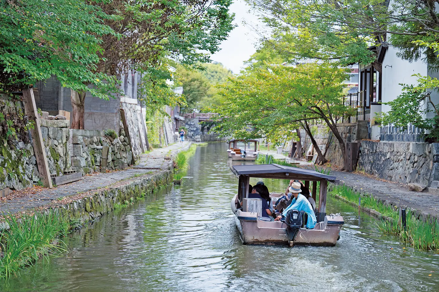 琵琶湖の東岸ドライブは、さざなみ街道が情趣深い。ガードレールを設置していない区間が長く、琵琶湖畔の原風景に近い趣を味わうことが可能だからだ。その湖東で立ち寄りたいスポットのひとつが彦根城。元は井伊家の居城で、今日においても壮観を極めている。小高い山に建つ天守閣からは、琵琶湖が一望できる。また、彦根市を北上した先の長浜市には、戦国時代末期に豊臣秀吉が城主として過ごした長浜城の城下町が広がり、水路に憩う白鷺が豊かな生態系を象徴していた。琵琶湖の最北部を走る奥琵琶湖パークウェイでは、山の緑と湖の碧が睦み合い、まさに詩が始まっていた。