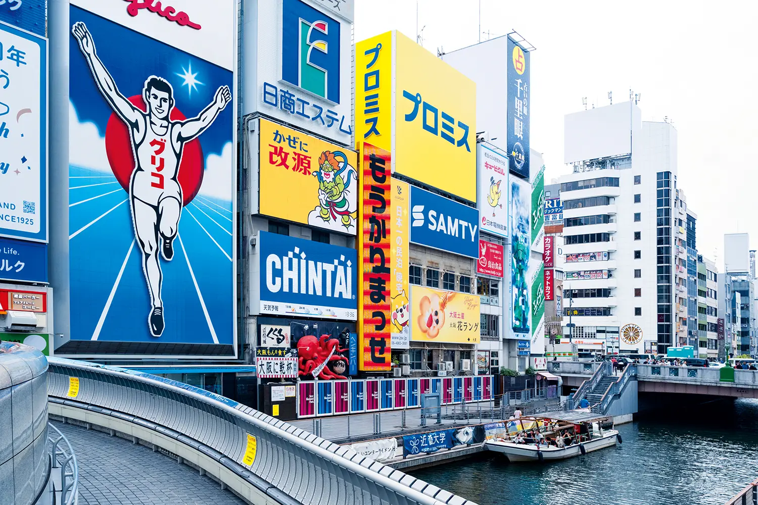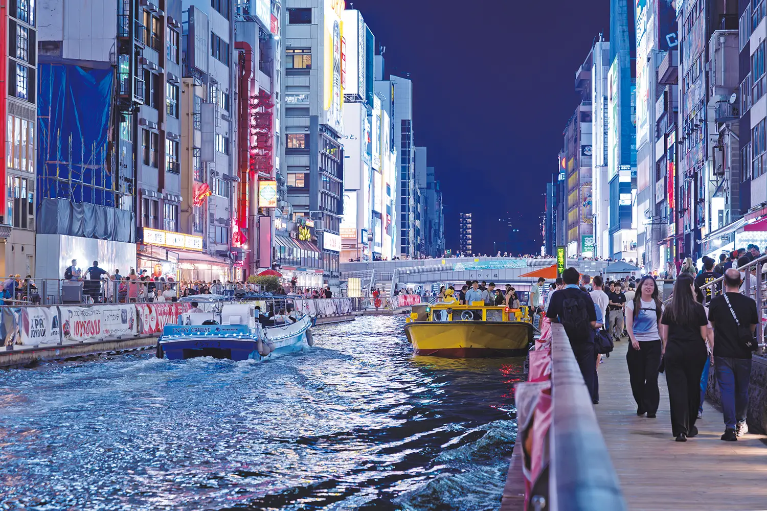 あのランドマーク的看板でお馴染みの道頓堀沿い(湊町~日本橋の約1キロメートル)も、今は「とんぼりリバーウォーク」として遊歩道・ベンチ・水上テラス・夜間ライトアップといった趣向が加わっている。「とんぼりリバークルーズ」も就航し、「水都大阪の顔」として世界中から人が集まる場所にアップデートされていた。