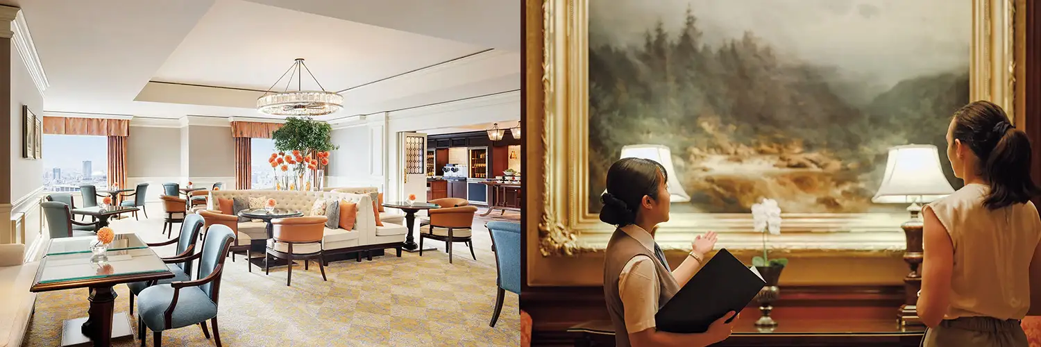 ザ・リッツ・カールトン大阪は、1997年の開業当初から「Homes Away from Home(第二の我が家)」というコンセプトを掲げている。英国貴族の邸宅を思わせるしつらえは、格式の中にくつろぎを感じてもらうためのもの。館内の至るところに絵画、彫刻、工芸品が飾られている。作品について知りたければ、毎日18時から開催の「アートツアー」に参加してみよう。スタッフの案内による、芸術鑑賞という体験価値が提供され、終了後には大阪ならではのドリンクが提供される。ホテル高層階部クラブフロアおよびクラブスイート宿泊者のみがアクセスできる「クラブラウンジ」では、朝食・軽食・アフタヌーンティー・夕食前のオードブル・スイーツ&コーディアルといったフードプレゼンテーションを満喫することができる。「水と歴史の物語」を辿る、琵琶湖と大阪をつないだ贅沢な旅は、ここに自然観や生命観、ホテル観も一新されて、見事に完結した。