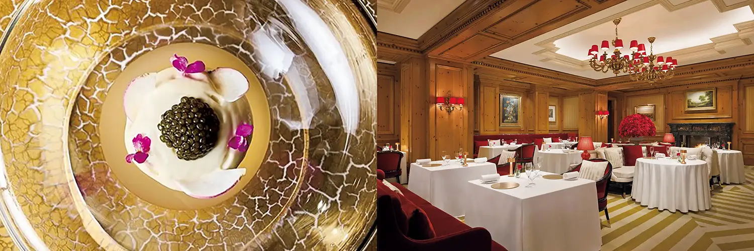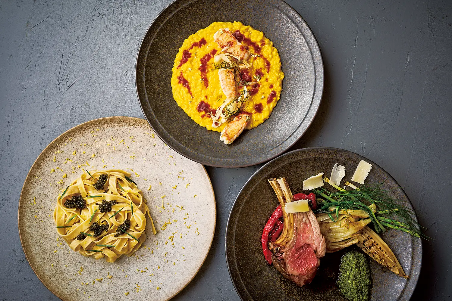 ミシュランの星に輝くメインダイニングは、素材の本質を引き出す正統派フレンチ。伝統的技法を守りながら、日本の旬の素材も巧みに取り入れ、色彩と盛りつけの美を追求する。