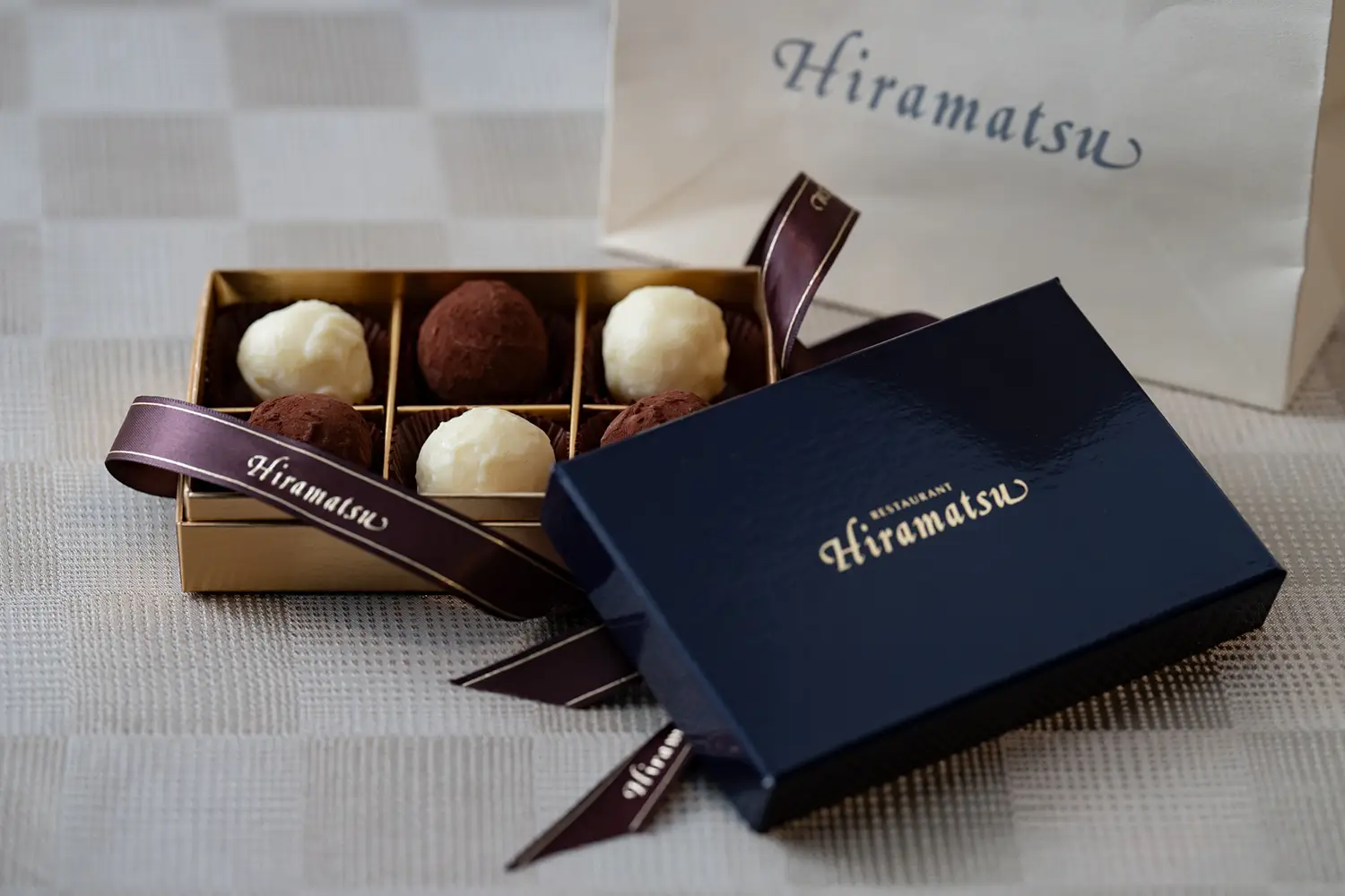 レセプションでのお見送りの際、トヨタファイナンスの社員たちから一人ひとりお礼の言葉とともに手渡されたのは、「ひらまつ」特製のトリュフチョコレート。帰宅してリボンを解き、中から現れたお菓子を見て、「レストランひらまつ 高台寺」で過ごした特別でスイートなひとときを思い出していただけていたら幸いである。