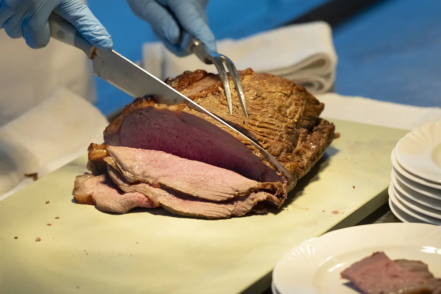 前夜祭の会場となったのは、「ザ・ブセナテラス」と同じ岬内に建つ「万国津梁館 サミットホール」。その名のとおり、2000年九州・沖縄サミットの首脳会合会場となった格式高いバンケットであり、面積441平方メートル、円卓使用時の収容人数250人という壮麗な空間を誇る。建築素材に琉球赤瓦や琉球石灰岩を用いた沖縄ならではの様式も魅力で、まさに沖縄随一の迎賓館といった風格を感じさせる。