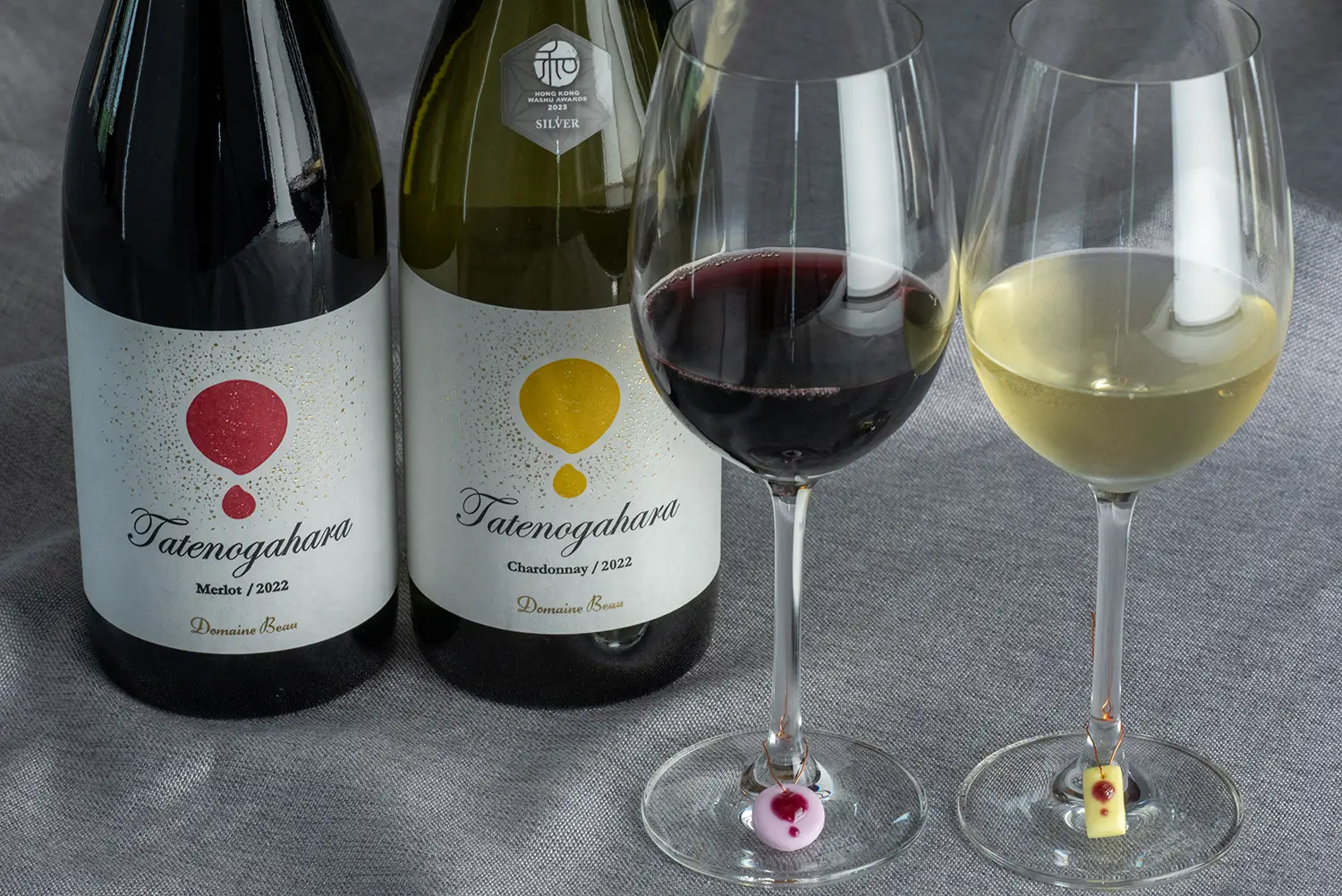 穏やかな香りと滑らかな口当たりの赤ワイン「立野原メルロー 2022」は、プルーンやコーヒーのような奥深い香りを持ち、牛肉などの肉料理はもちろん、パスタやチーズとも好相性。和酒アワード銀賞を獲得した 白ワイン「立野原シャルドネ 2022」は、シンプルで飲みやすく、さまざまな料理に合う。