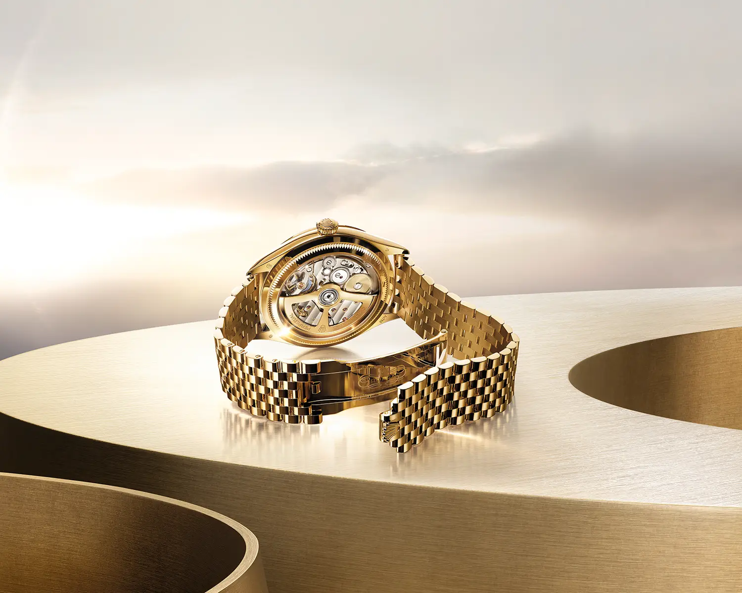 ダイアルとベゼルには、熟練のジェムセッターがダイヤモンドをセット。ロレックスが誇る美しいジェムセッティングを実現するには、宝石本来のクオリティのほかに、宝石の高さや方向、位置が正確に揃っていること、規則性、セッティングの堅牢性とプロポーション、そして金属細工に施される入念な仕上げなどが重要な要素となる。こうした華麗なシンフォニーが、時計の美しさと身に着ける人の魅力を際立たせるのだ。