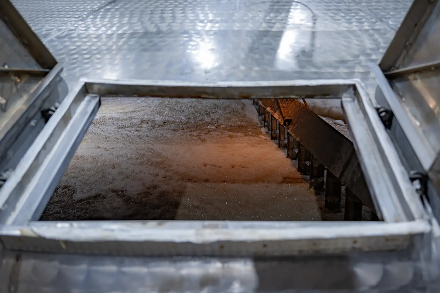 粉砕した大麦麦芽を仕込水とともに仕込槽へ入れ、麦芽中の酵素作用でデンプンを糖に変化させ、麦汁をつくる。仕込水に使われるのは、山々に降り注いだ雨雪が大地に染み込み、およそ20年かけて花崗岩層をくぐり抜けることで磨かれた南アルプスの地下天然水。適度なミネラル分を含んだ軟水が、「白州」のモルト原酒の香味の土台となる。