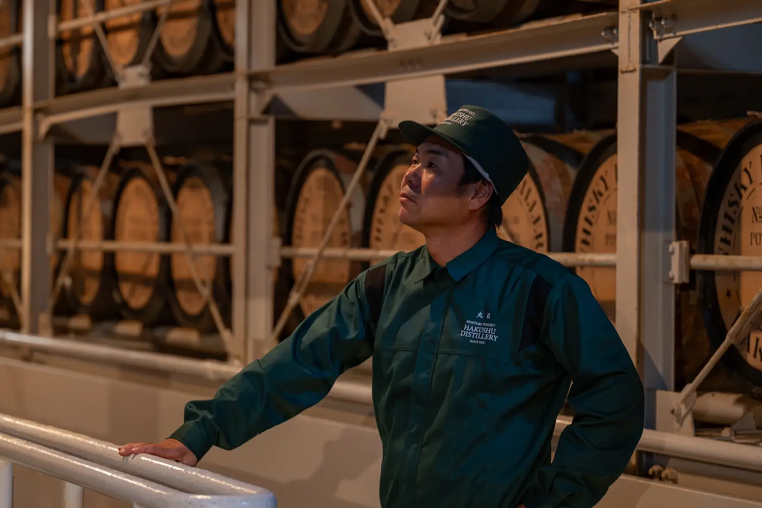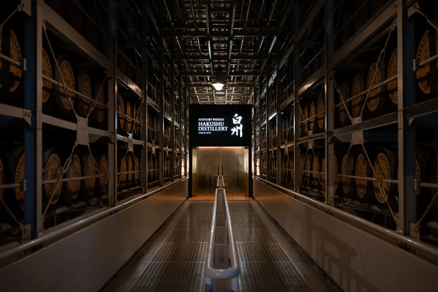 今回、貯蔵庫を案内してくださった白州蒸溜所 貯蔵ブレンドグループ リーダーの丸目勇一氏によれば、白州蒸溜所では鉄製のラックに樽を何層にも並べて熟成させるラック式を採用している。貯蔵環境によって、熟成の進み具合も異なってくるため、日々、注意深く樽を見守りながら、時には樽の位置を移動させることもあるという。