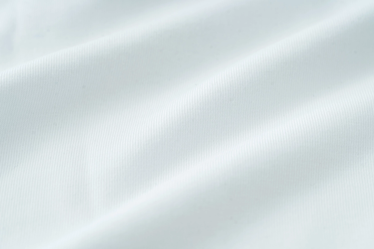 まず目に留まるのは、素材の確かさだ。天竺素材の編み目をぎゅっと詰めた度詰め天竺を使用し、通常のTシャツとは比べものにならないほどの耐久性を備える。型崩れしにくく、長く着ても美しいラインを保つ。さらに、桃の表面のような柔らかさを引き出すピーチ起毛加工が施され、肌に触れた瞬間にふわりとした独特のぬくもりを感じさせる。