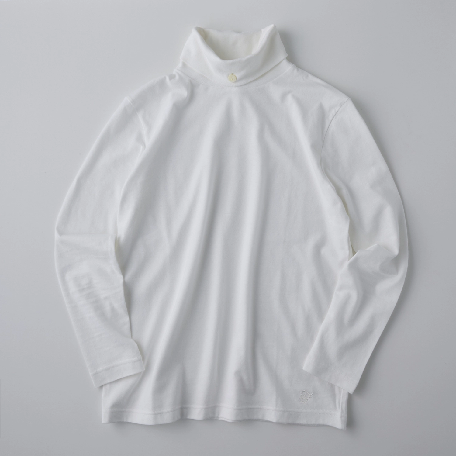 「ネックのズレを防止 ボタン付きタートルネック」ピーチ起毛 レギュラーフィット 長袖|タートルネック 11,000円(税込み・送料無料/2026年2月末価格改定予定)