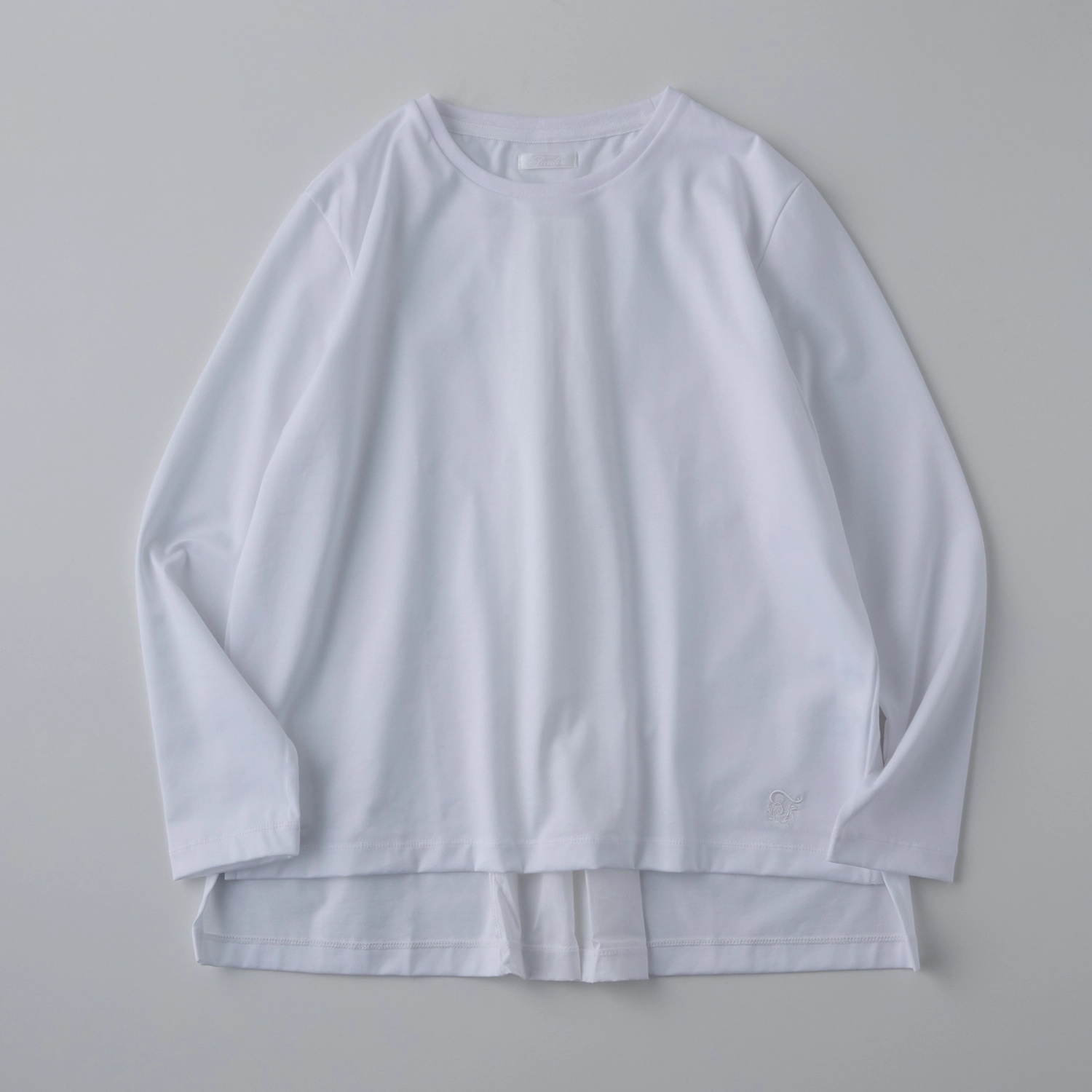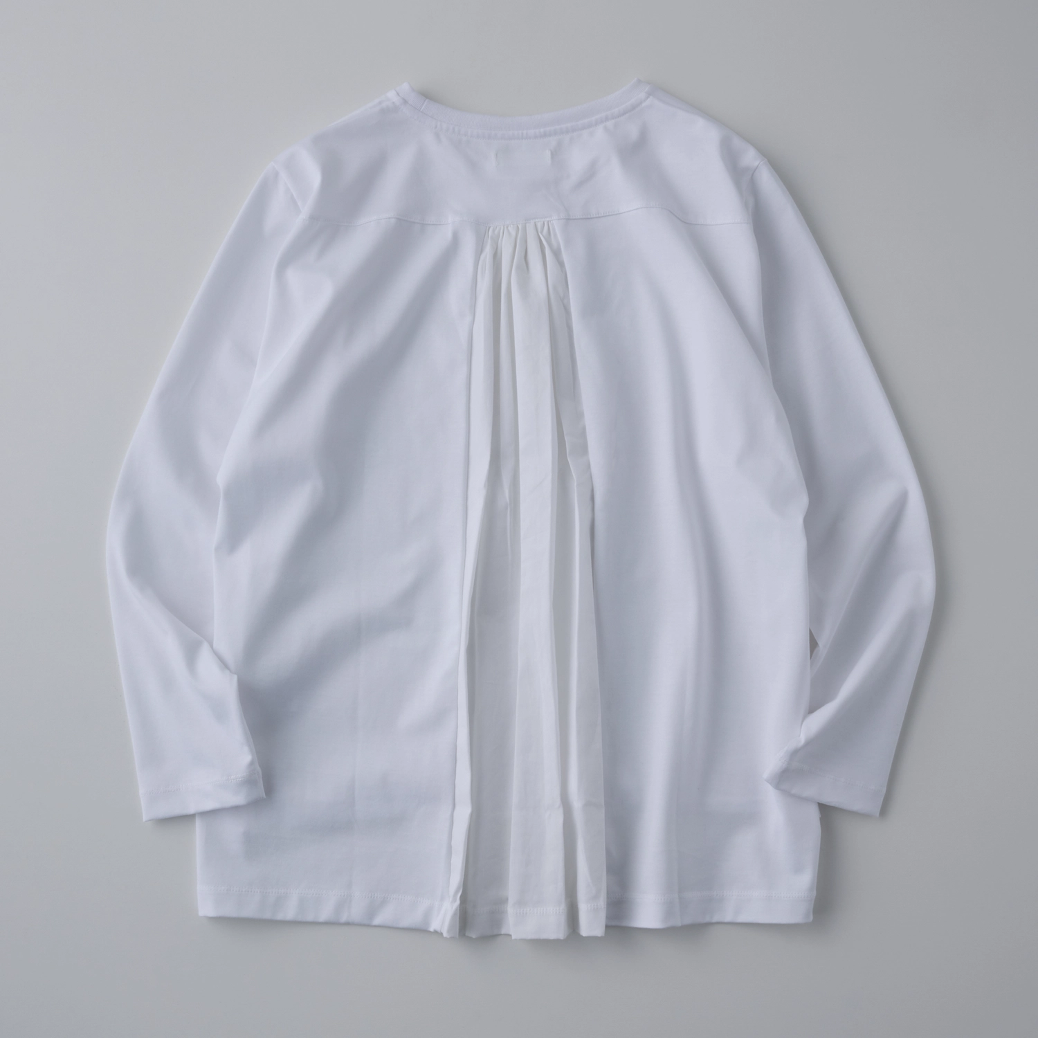 WOMEN’S―ひらりと広がり、たたずまいに余裕を演出するバックギャザーTシャツ