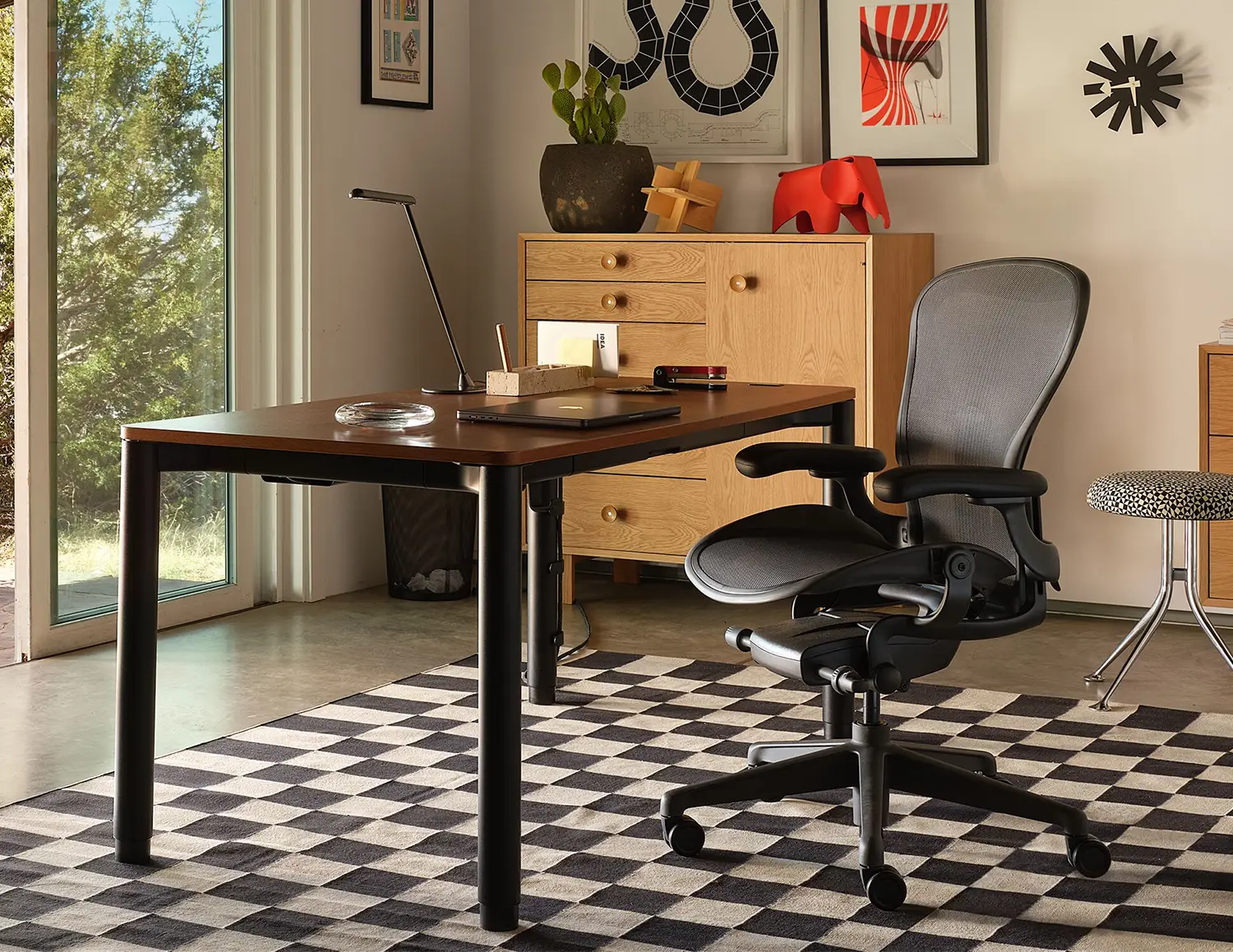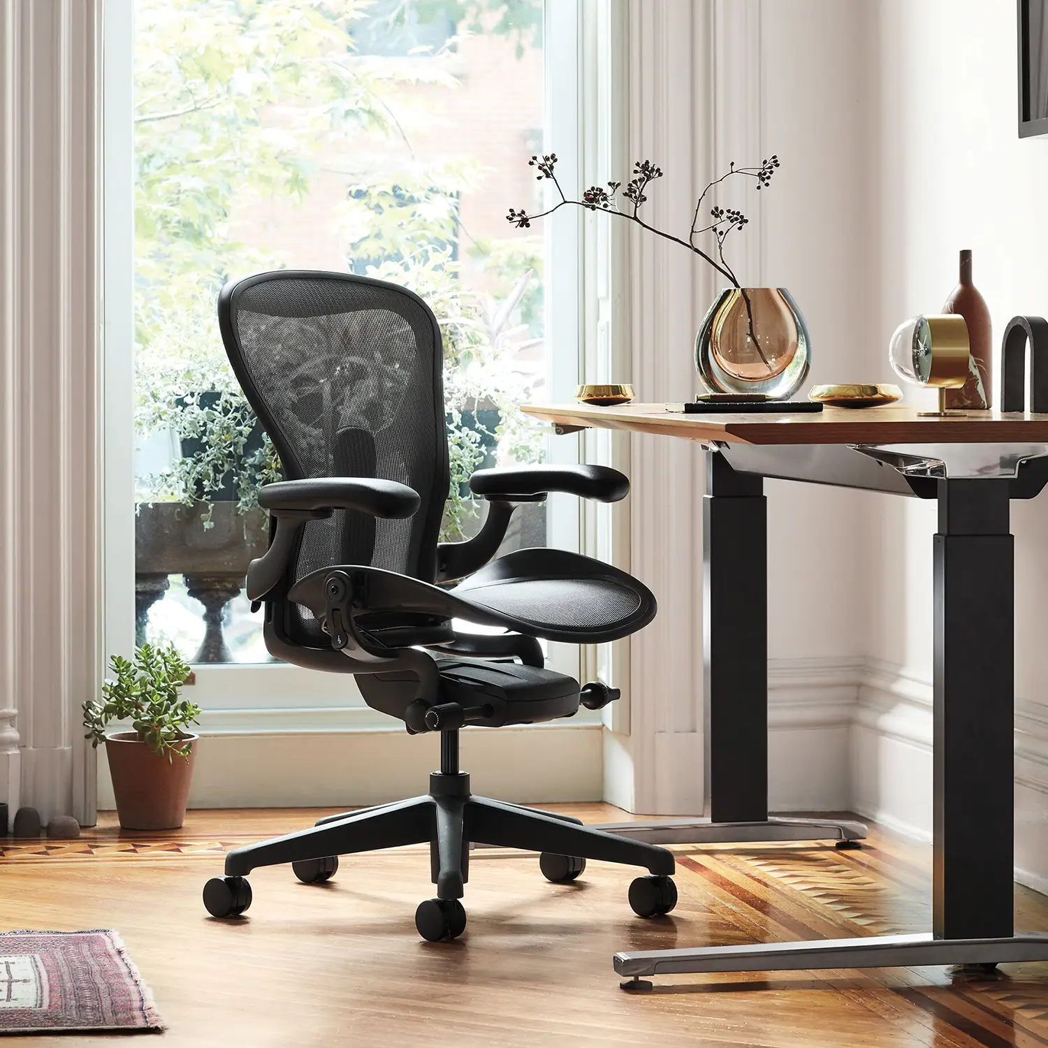 アメリカのハーマンミラーによって1994年に発表された「アーロンチェア」。エルゴノミクス(人間工学)に基づく高機能ワークチェアの代名詞的存在だ。世界で初めてクッションを取り除き、メッシュを採用するなど革新的な椅子だが、発売以降も改良を積み重ね、2016年にすべてのパーツを一新してリマスター。世界中のワーカーたちに支持されつづけている。