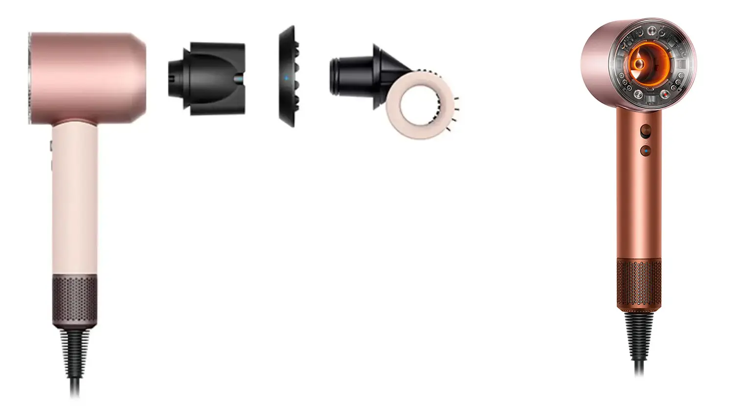 ※左の写真の商品カラーはセラミックピンクですが、実際にプレゼントとなる商品は右のシャンパンロゼです。本体(1点)と、3点のアタッチメントのセットとなります。