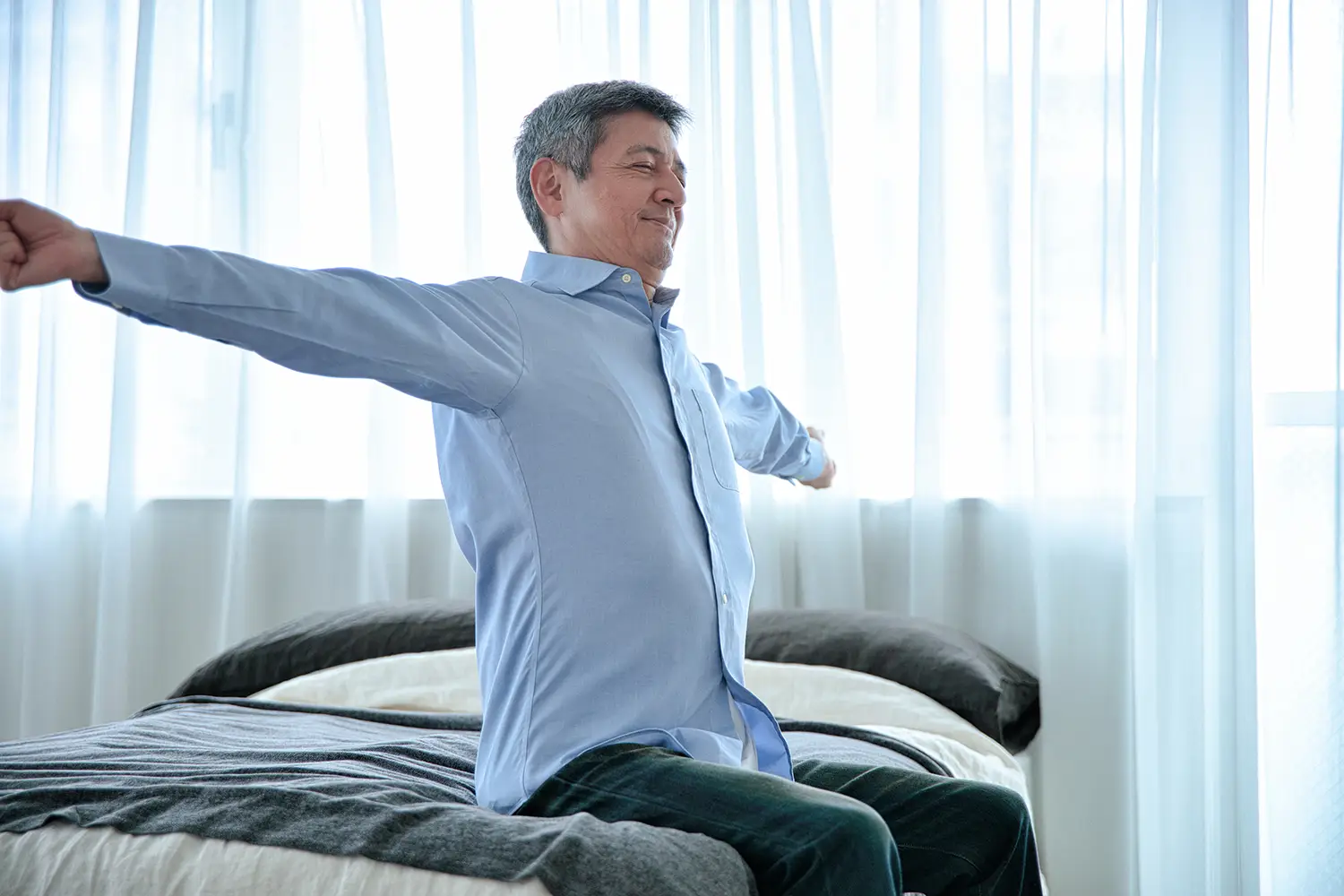 起床時間が安定すると体内時計が整い、夜も自然と眠りやすくなる。