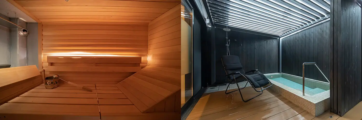 5つあるサウナ室は、どれも本格的なフィンランド式サウナ。全室貸し切りのため、好きなタイミングでロウリュをすることができる。水風呂は、透き通った地下水と、鉄分を多く含んだ鉄水風呂の2種あり、違いを楽しめるのも興味深い。