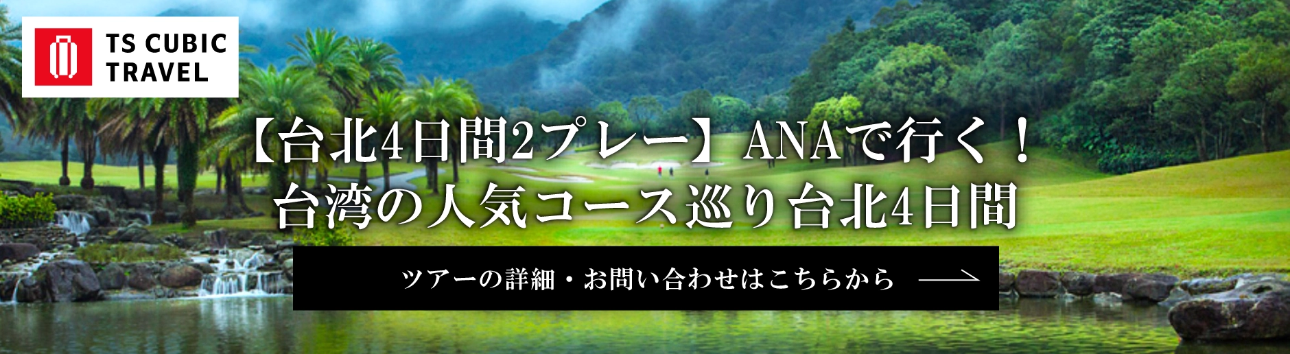 ご紹介するゴルフツアーは、日本各地から乗り継ぎ便利な羽田空港と、台北の市街地に近い松山空港を結ぶANA便を使用。2名さまから出発できるため、スケジュールが立てやすいプランです。気の合う仲間や家族と、ゴルフ、観光、美食を一度に楽しめる、充実の4日間をお過ごしください。