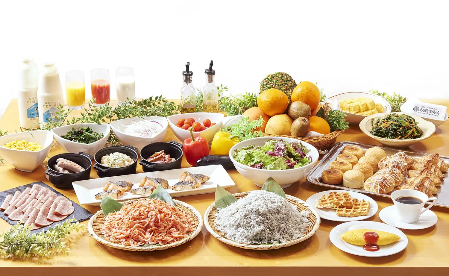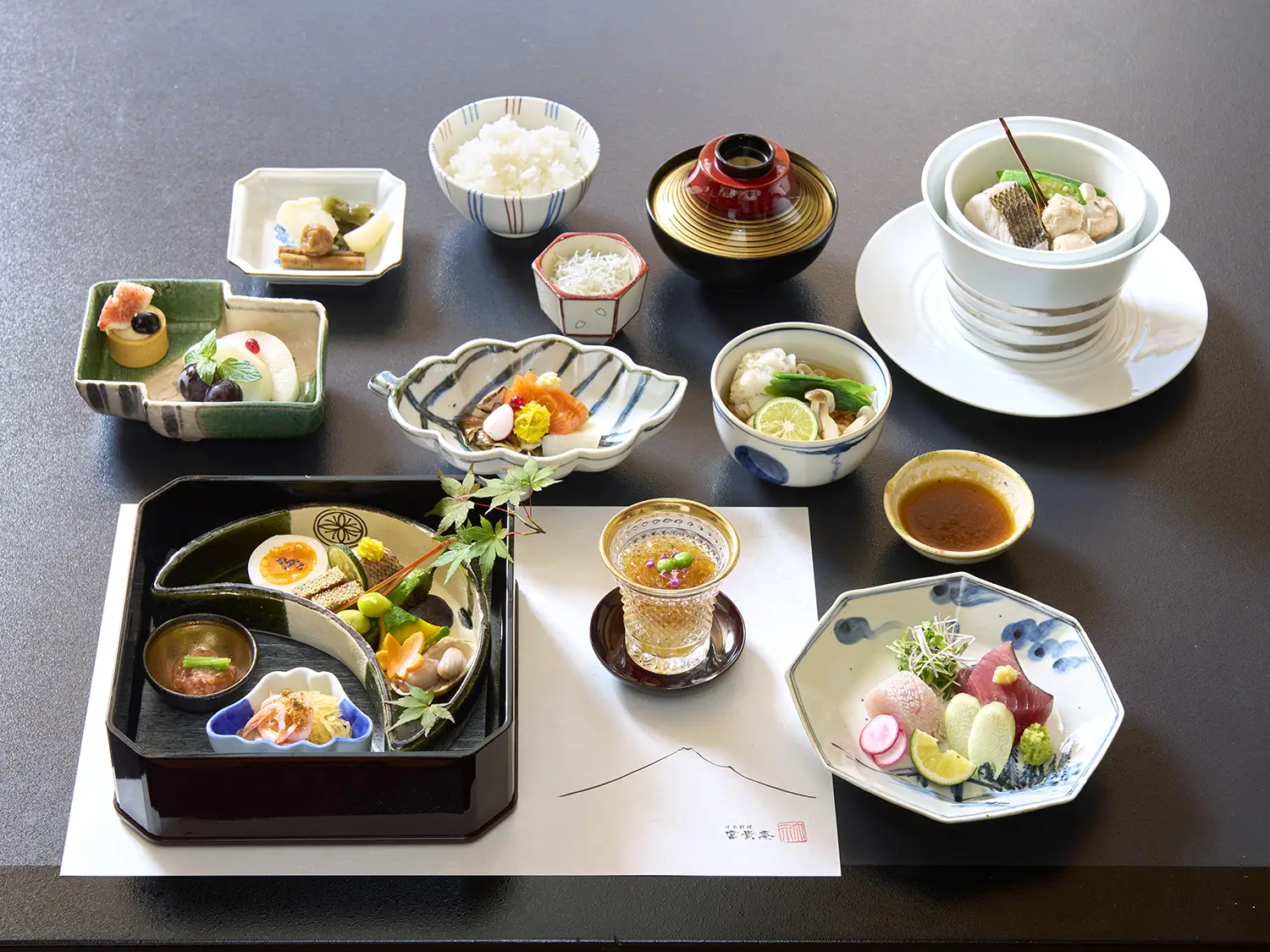 滞在中は、絶景とともに多彩な美食体験を。館内には本格的なフランス料理が堪能できる「オールデイダイニング ザ・テラス」をはじめ、日本料理と鉄板焼きのレストラン、カジュアルなカフェレストラン、夜景を楽しめるラウンジなど、レストラン&バーも多彩。朝食は、静岡の自然が育んだ山海の幸を、余すことなく楽しむことができます。本ゴルフツアーでは、2日目の夜に日本料理「富貴庵」へご案内。季節の旬をふんだんにした料理の数々は、素材そのものの味を引き出した調理法で提供され、五感で楽しむことができると好評です。