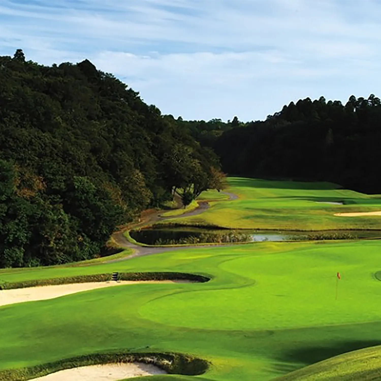 つづいては、千葉の名門エリアのひとつ「成田」から、こちらも太平洋クラブが運営する「太平洋クラブ成田コース」をご紹介。4大メジャーをすべて制したグランドスラマーのゲーリー・プレーヤーが設計。距離の長いゴルフ場ではありませんが、クリークで囲まれたホールや、深さ3メートルのソッドレイヤーバンカー(芝生を積み重ねて作られた独特のバンカー)など、つい写真を撮りたくなるような印象深いホールが多いゴルフ場です。2016〜2018年には「千葉オープンゴルフトーナメント」の舞台になりました。