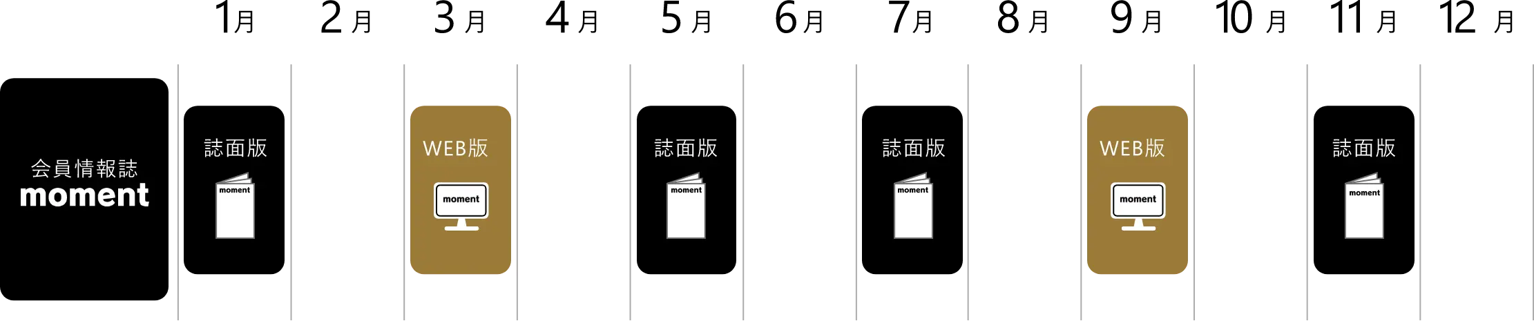 会員情報誌「moment」は、年6回発刊(誌面版4回、WEB版2回)しています。